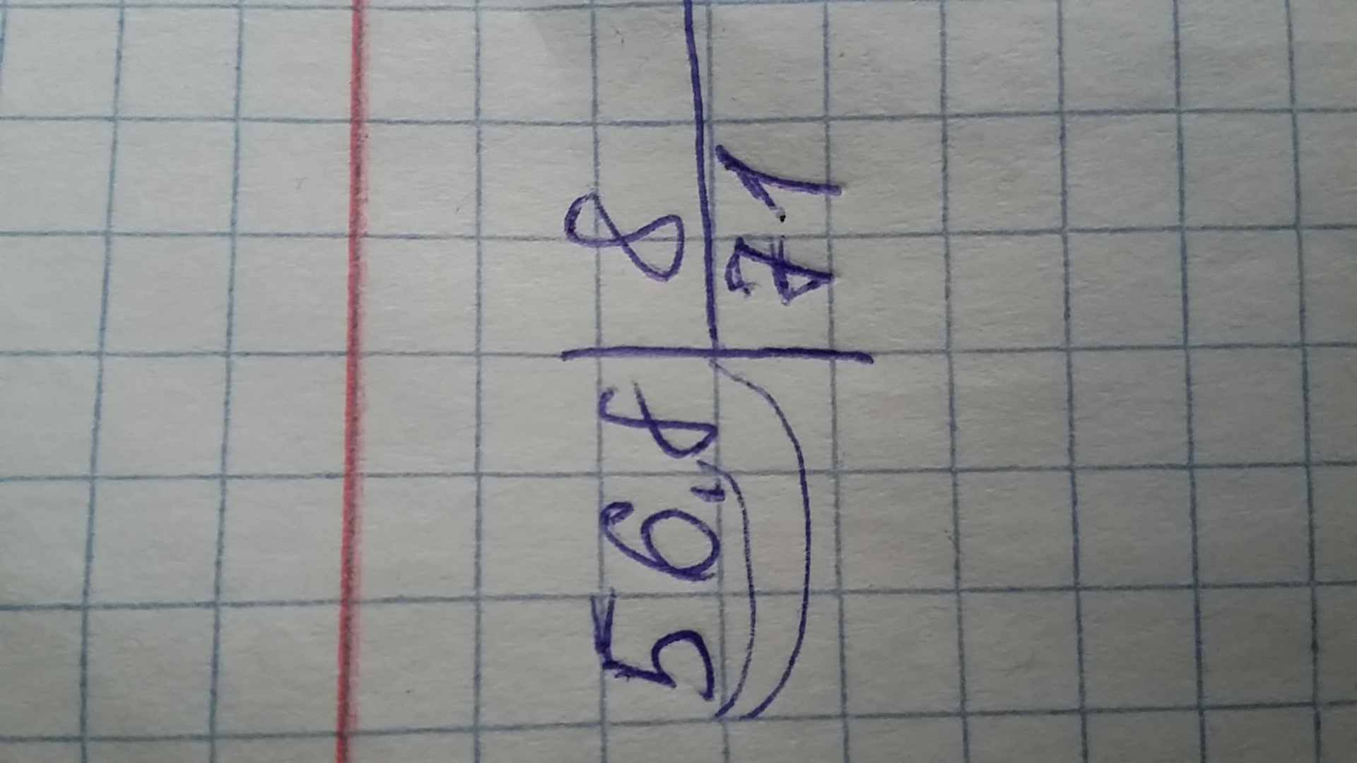 Я не знаю как правильно столбик записать, ну как то так, сначала 56 делим на 8 равно 7 и 8 разделить на 8 равно 1. Ответ 71.