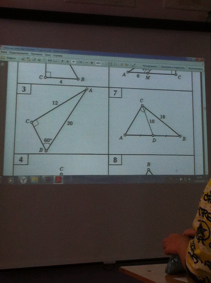 3 угол САВ прямой а сумма всех углов треуг. =180 град. от сюда вылетает 180-90-60=30 градусов острый угол равен 30град