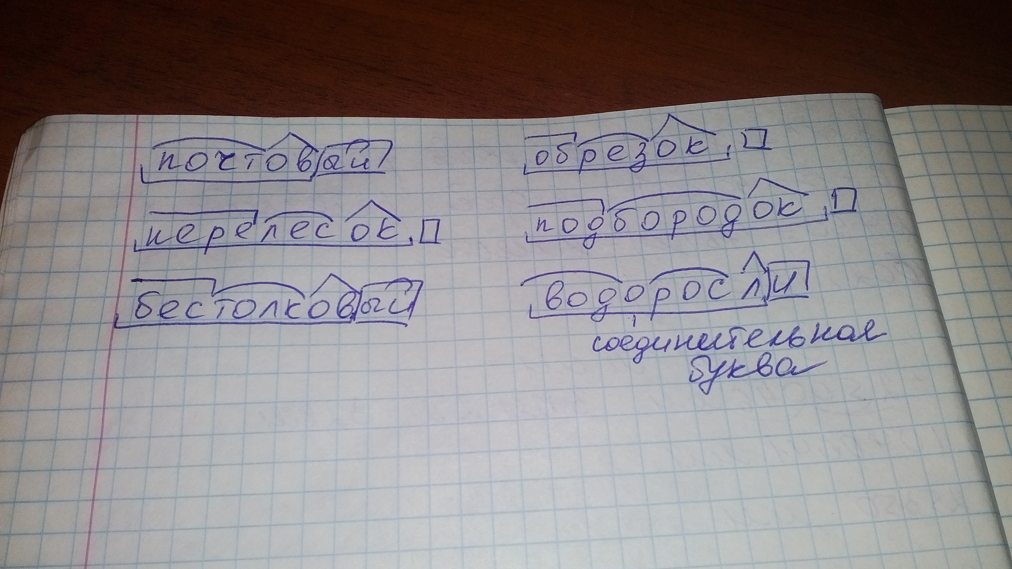 помогите разбор по составу слова: почтовый, перелесок , обрезок,подбородок,бестолковый,водоросли дам 29 баллов