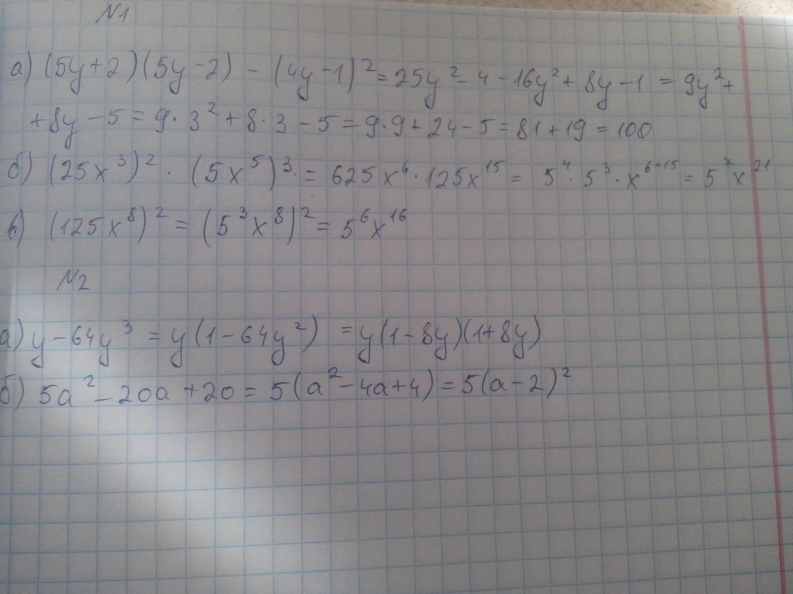 а) (2 + 5у)*(5у-2) - (4у-1)2 - найдите значение выражения при у = 3