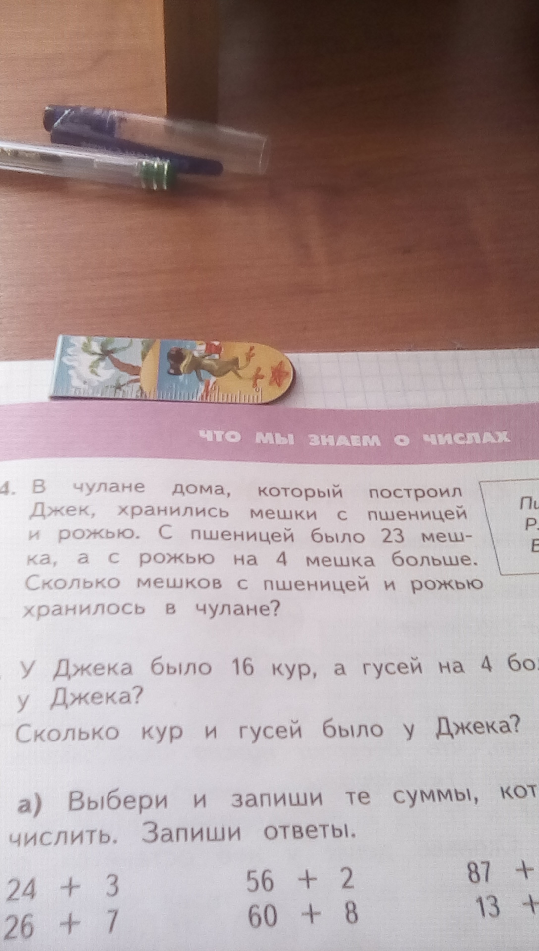 1)23+4=27(мешка)-ржи 2)23+27=50(мешка)-ржи и пшеницы Ответ:50 мешков