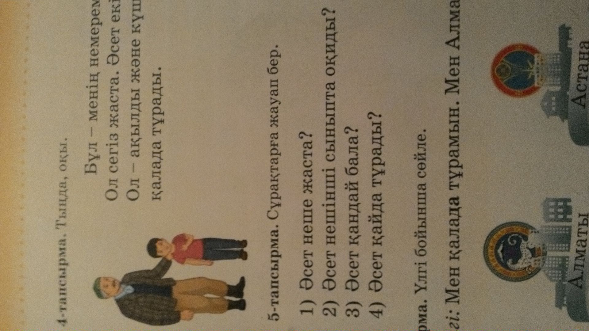 5 тапсырма 1 . 10.2.1 сынып.3. жақсы тәртәртіпті.4.Алматы