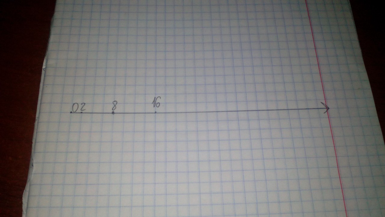 начертите луч с началом в точке о отложите вправо от этой точки четыре клеточки поставте точку и подпишите под ней число 8 отметьте на этом луче числа 16 и 2 пж