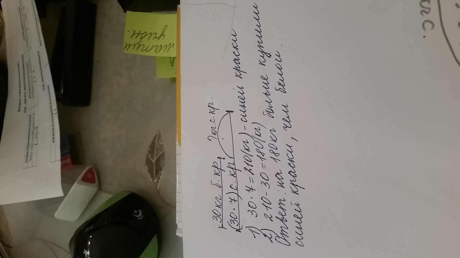 купили 30кг белой краски , а синей в 7 раз больше. На сколько кг купили синей краски, чем белой?(напишите схему на листочке. отправте сюда пожалуйста..)
