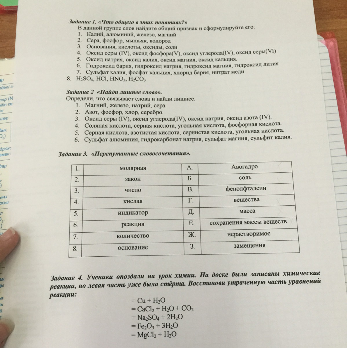 №3 молярная масса,закон Авогадро,кислая соль, индикатор фенолфталеин,реакция замещения,количество вещества,основание нерастворимое,число сохранения массы веществ