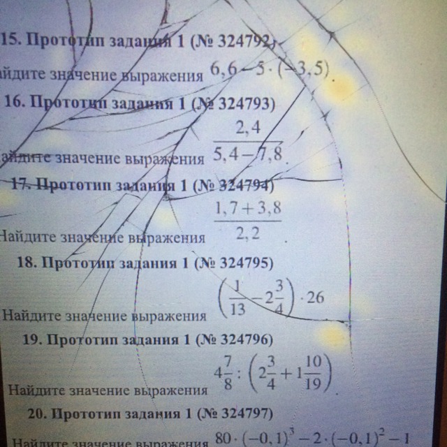 16) -1 (( 2,4 / (5,4-7,8)) 5,4-7,8 = -2,4 2,4/(-2,4) = -1