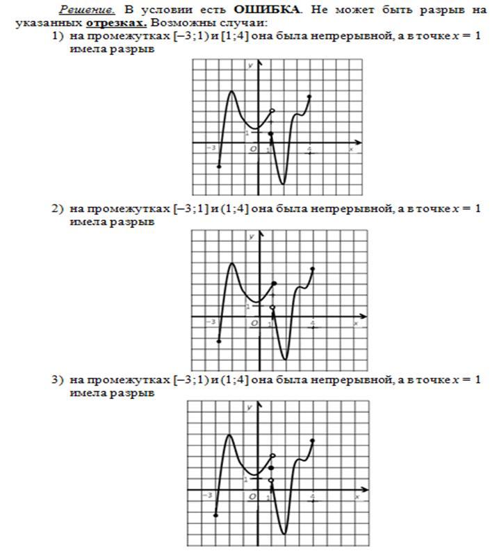 Изобразите график какой-нибудь функции , определённой на отрезке [-3;4], так, чтобы на промежутках [-3;1] и [1;4] она была непрерывной , а в точке x=1 имела разрыв .