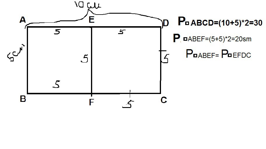 Помогите проверить, пожалуйста.... прямоугольник с длинами сторон 10 см и 5см разрезали на два одинаковых квадрата. Найдите периметр каждого квадрата. Петя записал такое решение: 1) (10+5) • 2=30см 2)30:2=15см Ответ: 15см Согласны ли вы с Петей? Ответ обоснуйте.