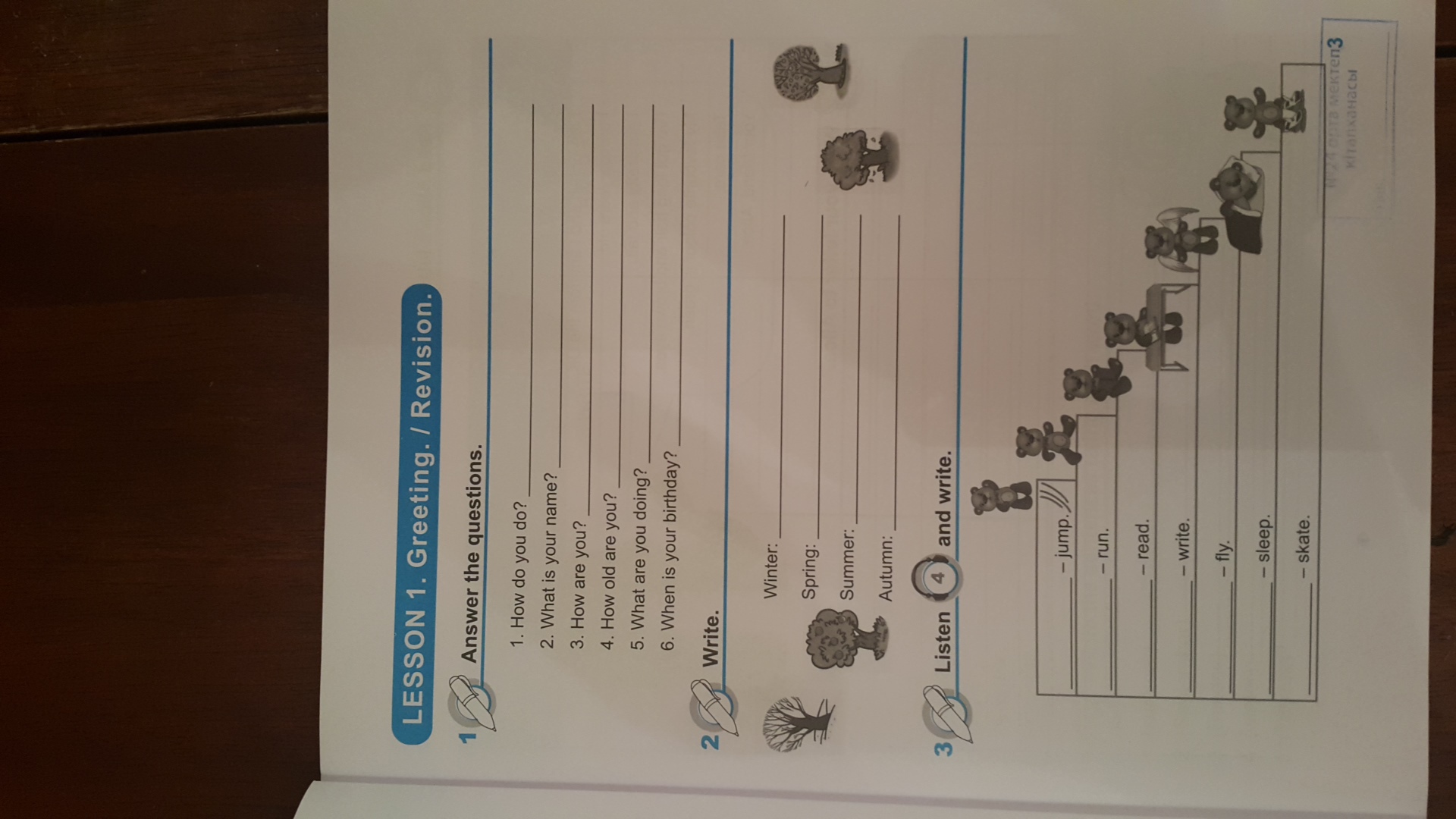 1. not bad. 2. my name is ________3. I'm fine.4.I'm (сколько тебе лет) 5.I'm doing an exercise. 6. my birthday on _____