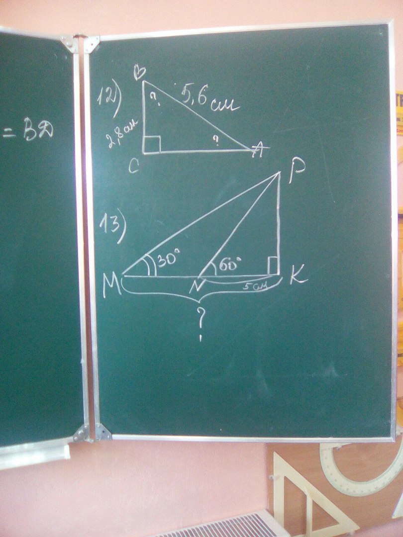 12. так как АВ/2=5,6/2=2,8=ВС (то есть катет ВС равен половине гипотенузы АВ), угол А=30 градусов