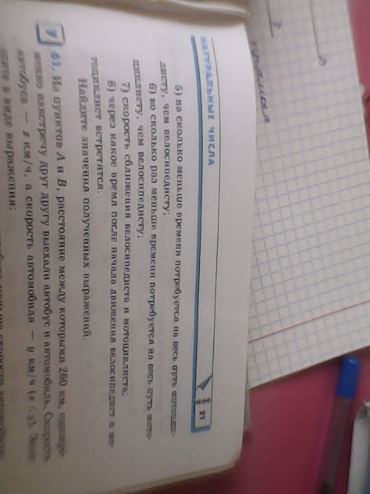 из пунктов а и б расстояние между которыми 260 км одновременно навстречу друг другу выехали велосипедист и мотоциклистов. скорость велосипедиста 13 км ч а мотоциклиста 52 км ч запиши в виде выражения