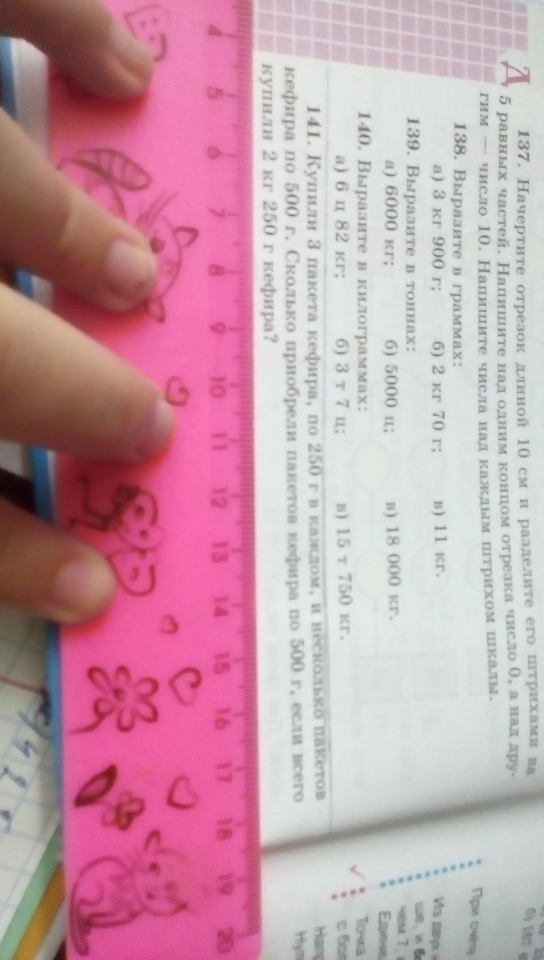 250*3= 750г кефира по 250г 2кг 250г округляем получилось 2250г 2250-750=1500г кефира осталось 1500:500=3 пакета по 500г 3+3=6 пакетов ответ 6 пакетов купила девочка