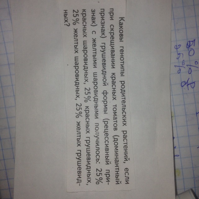фенотипы: красные шаровидные, желтые шаровидные, красные грушевидные, желтые грушевидные