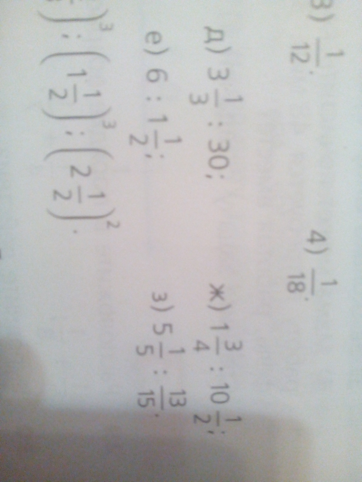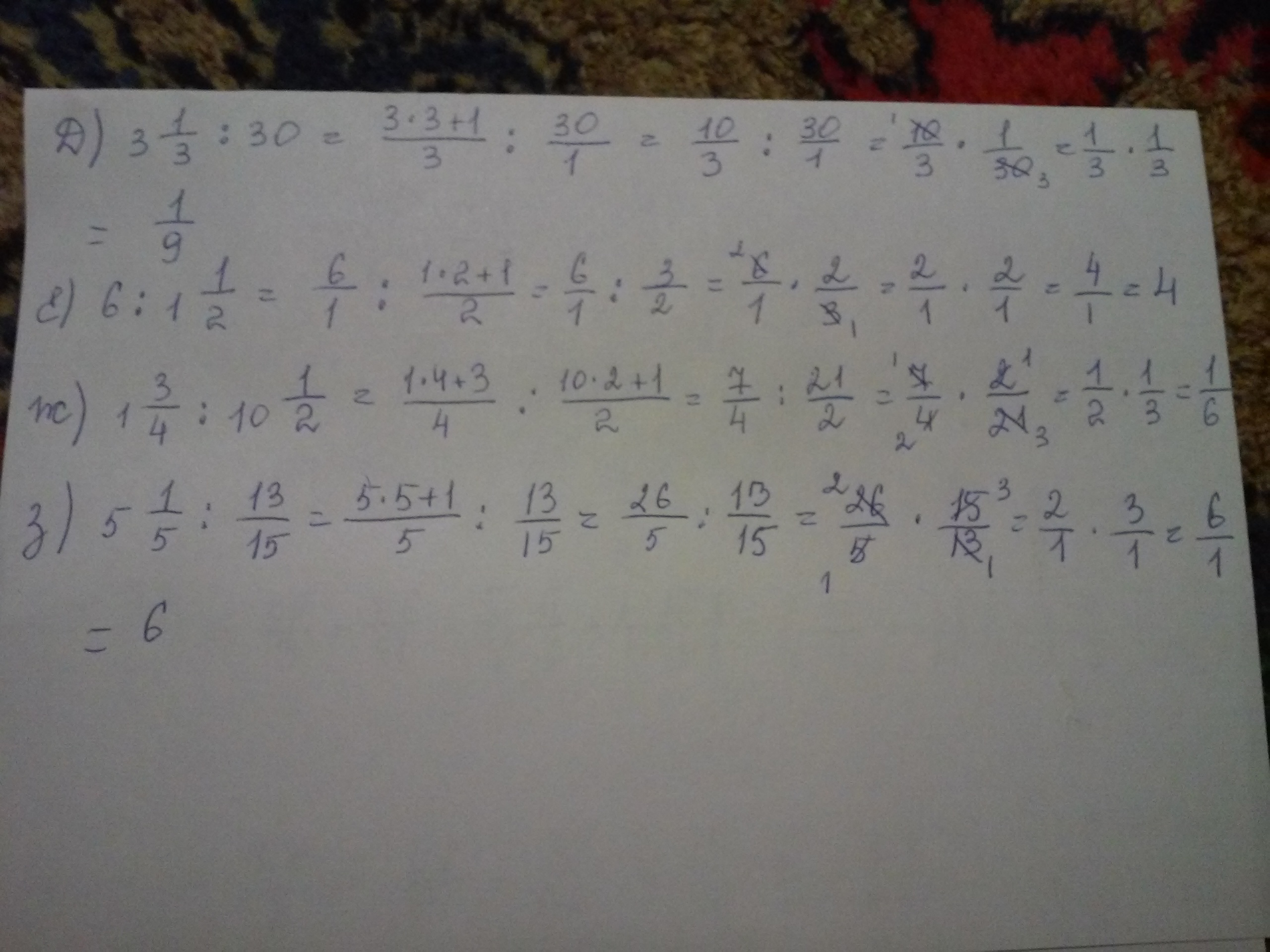 3 1/3:30=1/30, 6:1 1/2=3, 1 3/4:10 1/2=3/80, 5 1/5:13/15=1 2/13