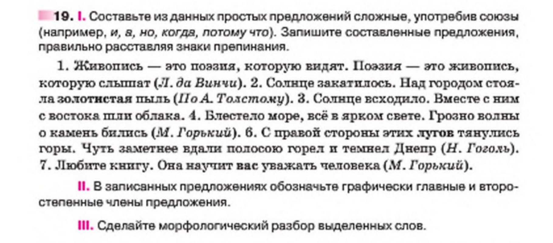1)Живопись-это поэзия,которую видят,а поэзия -это живопись,которую слышат.2)Солнце закатилось и над городом стояла золотистая пыль.3)и 4)и 5)и 6)потому что