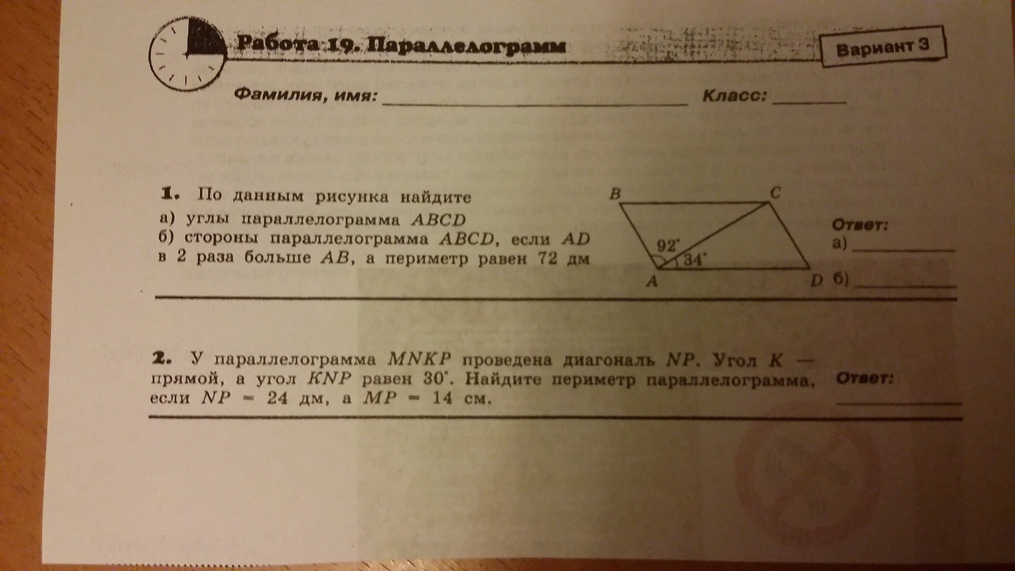 1) т.к угол КМР равен 30 градусам, то угол КМN тоже равен 30 градусам, потому, что диагональ МК делит угол NМР пополам.⇒угол NМР равен 60