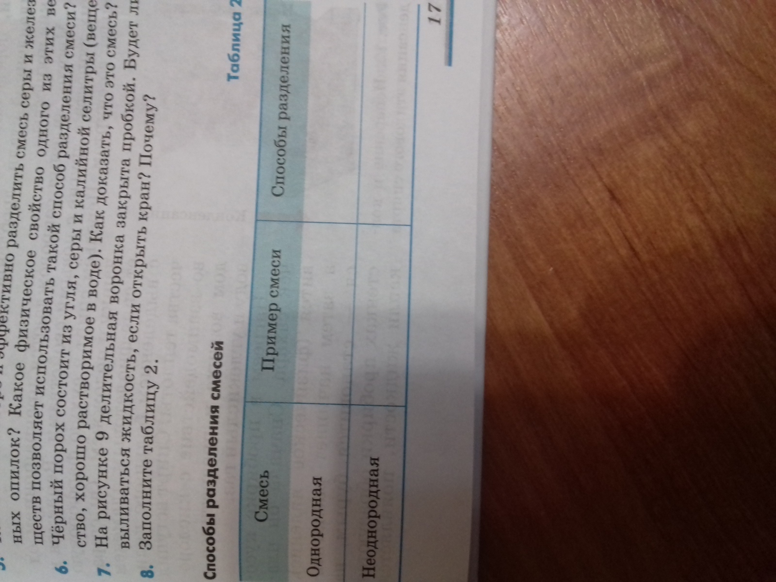 Помогите мне пожалуйста с химией 8 класс ( срочно нужно) и таблицу заполнить)) Буду очень благодарна)) Предложите способы разделения следующих смесей: