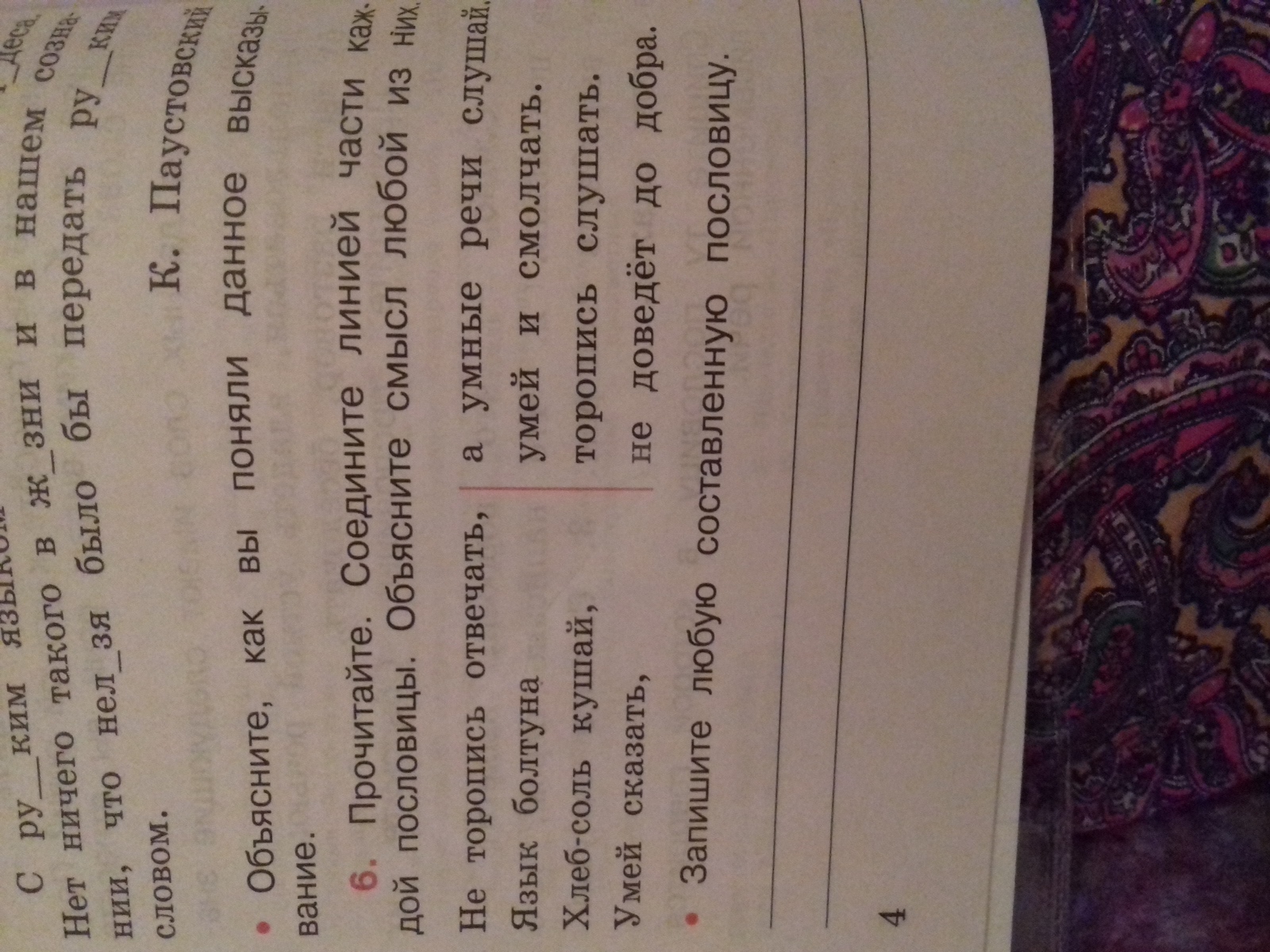 Например " не торопись отвечать, а торопись слушать" , это то что ты должен прислушиваться к другим, учиться на их ошибках, потом сделать правильный выбор в той или иной ситуации. Вот так я понимаю эту пословицу
