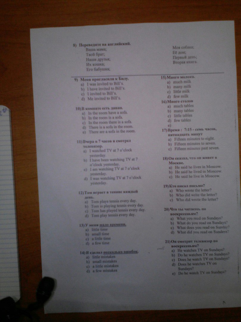 !!!!!!!!Люди добрые, помогите пожалуйста!!!!!!!Так то легкие задания, просто я в англе ноль. Ответить на тестовые вопросы !! Если будет не сложно, объяснит