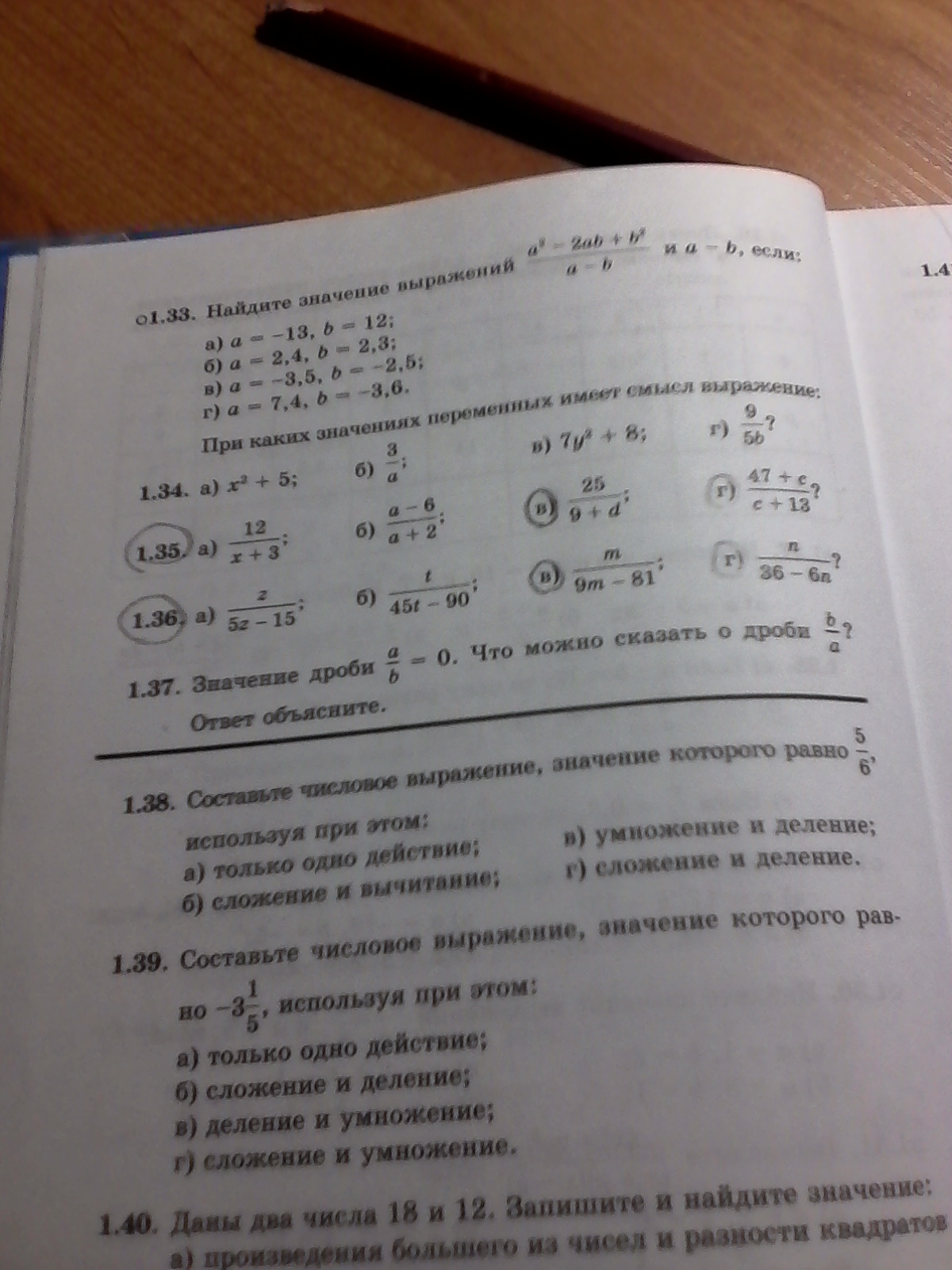 1.35 1.36 при каких значениях переменных имеет смысл выражения.Пожайлуста