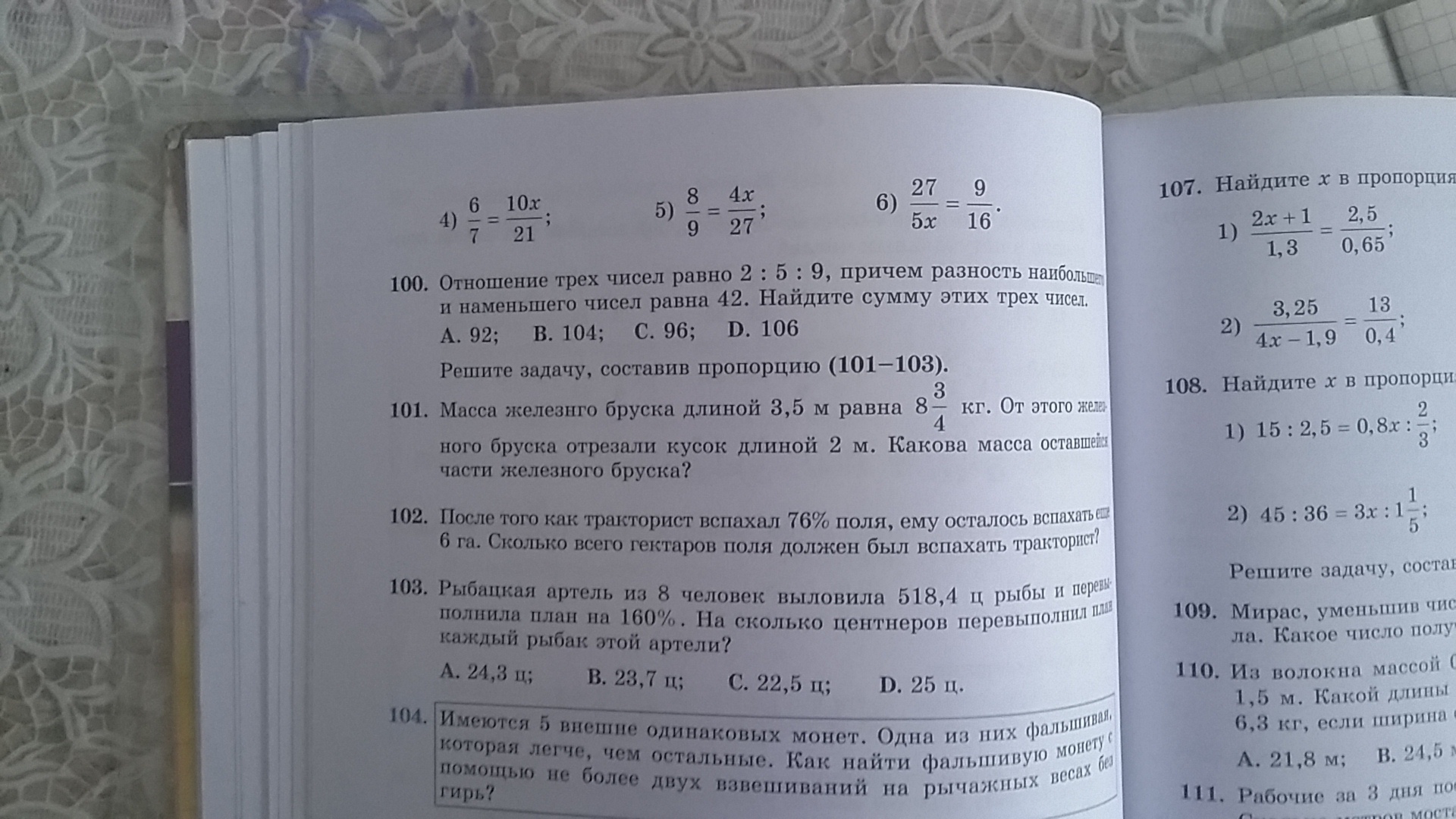 самый верх примеры.Найдите х в пропорциях