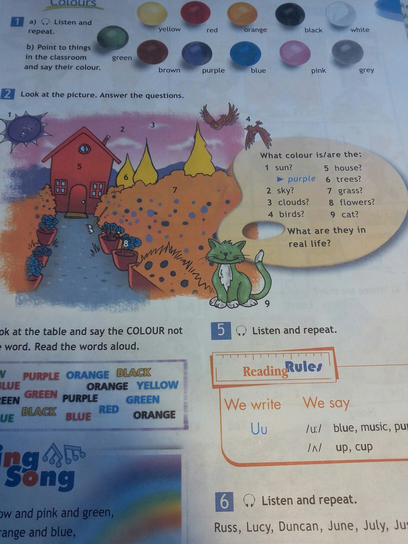 Помогите пожалуйста!Сначало надо составить вопрос со словом SUN sky и тд ответить на него примеры вопросов в задание номер2
