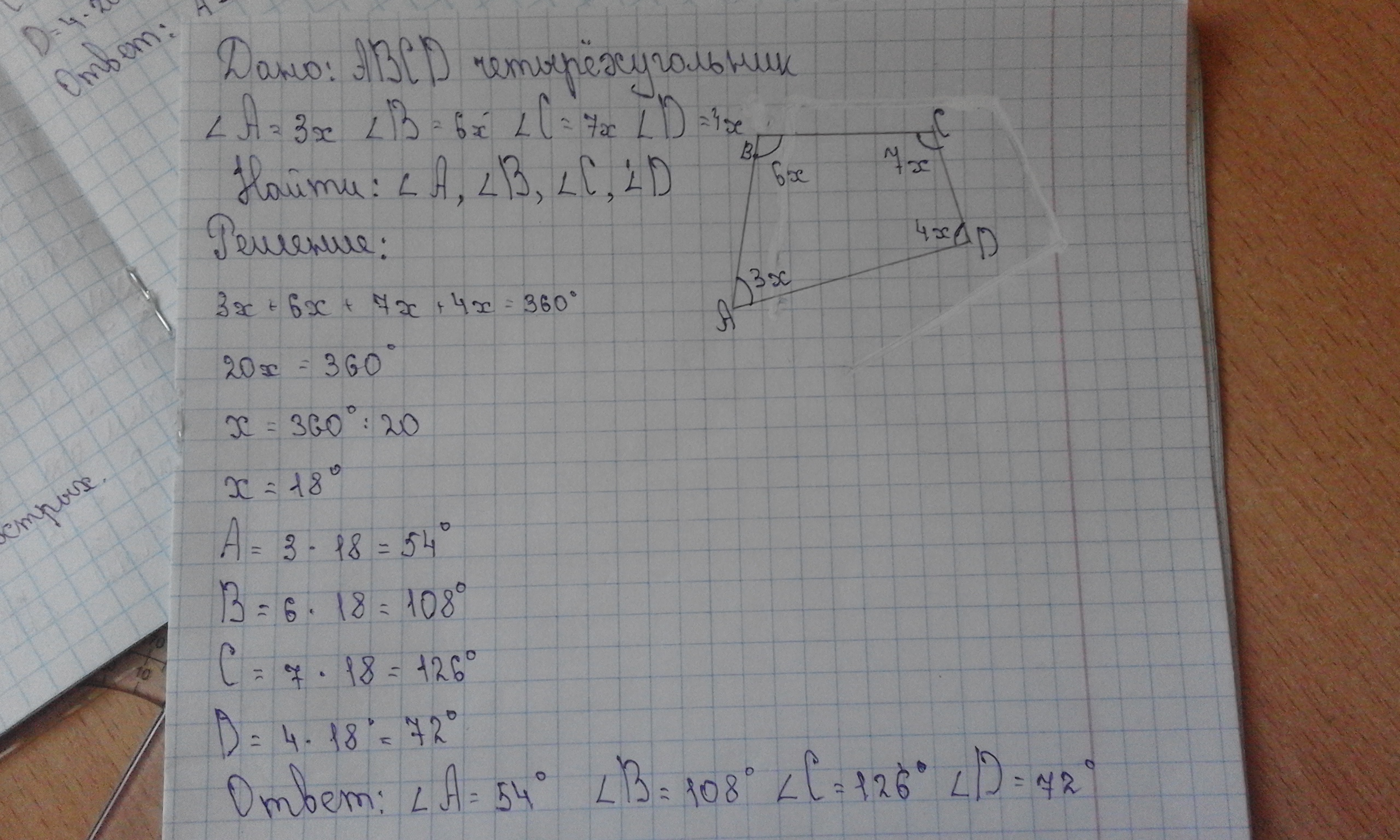 Найдите наибольший и наименьший углы четырёхугольника если они пропорциональны числам. 3:7:4:6