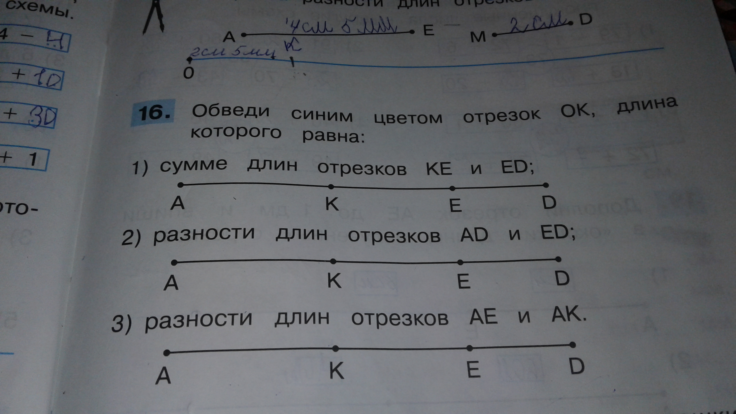 Обведи синим цветом отрезок ОК,длина которого равна,не пойму откуда взялся этот отрезок?Как сделать задание?Может это опечатка?