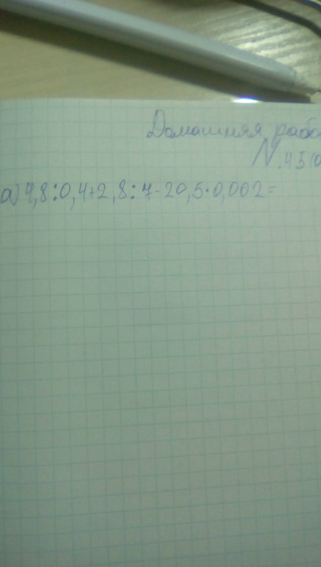 1)4,8:0,4=48:4=12 2)2,8:7=0,4 3)20,5*0,002=0,041 4)12+4=16 5)16-0,041=15,919