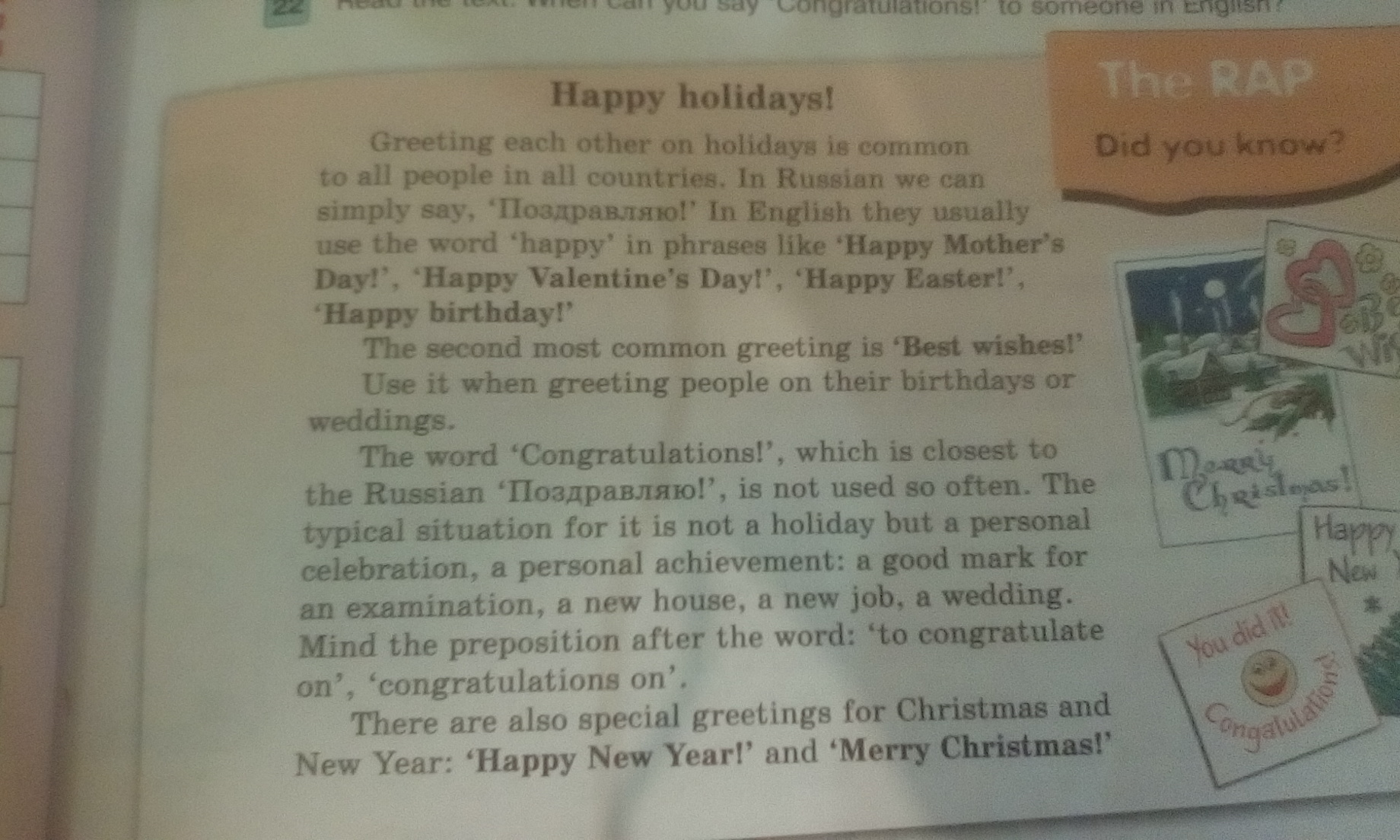 Также существуют специальные поздравления с Рождеством и Новым годом: "Happy New Year" и "Merry Christmas".