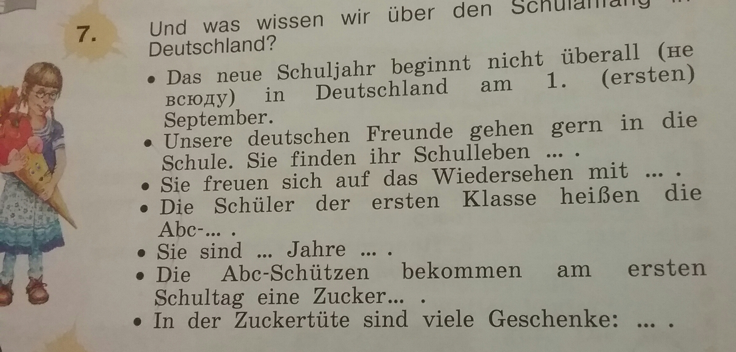 ...Ihr Schulleben interessant. Das Wiedersehen mit ihren Schulkameraden. Abc- Schüler.( или Schūtzen. 2 варианта верны) Sechs Jahre alt. Zuckertüte. Schokolade und Bonbons