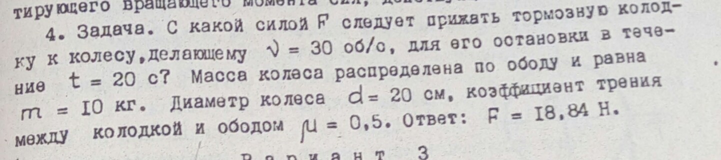 N=3.14*10*0.1*30/(0.5*20)=9.42 (Н)
