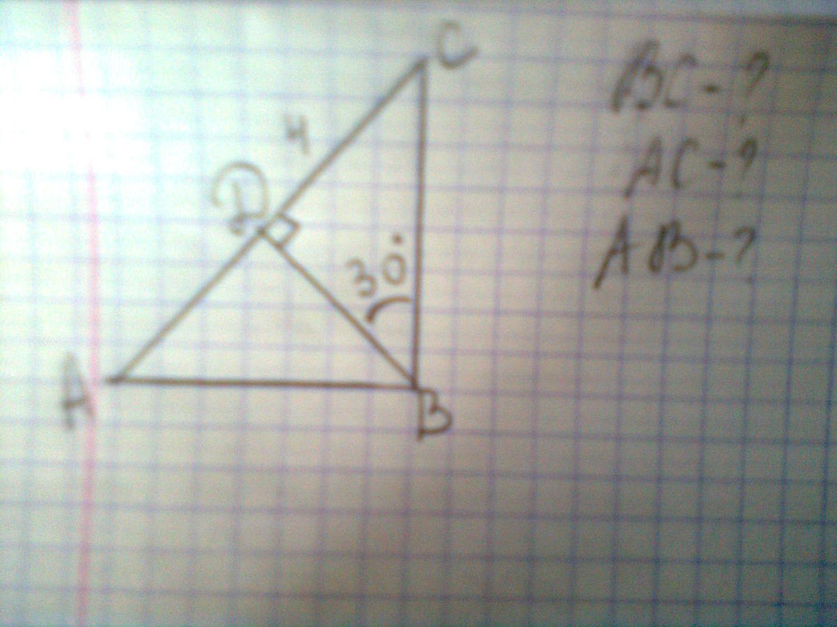 катет лжащий против угла в 30 градусов = 1/2 гипотенузы, тогда ВС=8