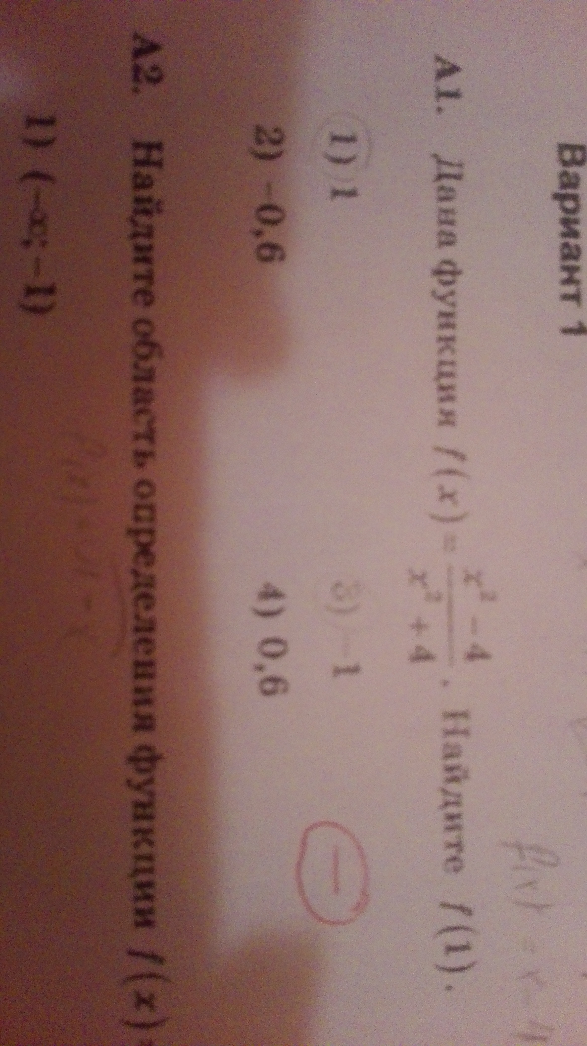 A1 f(1)=(1-4)/(1+4)=-0,6
