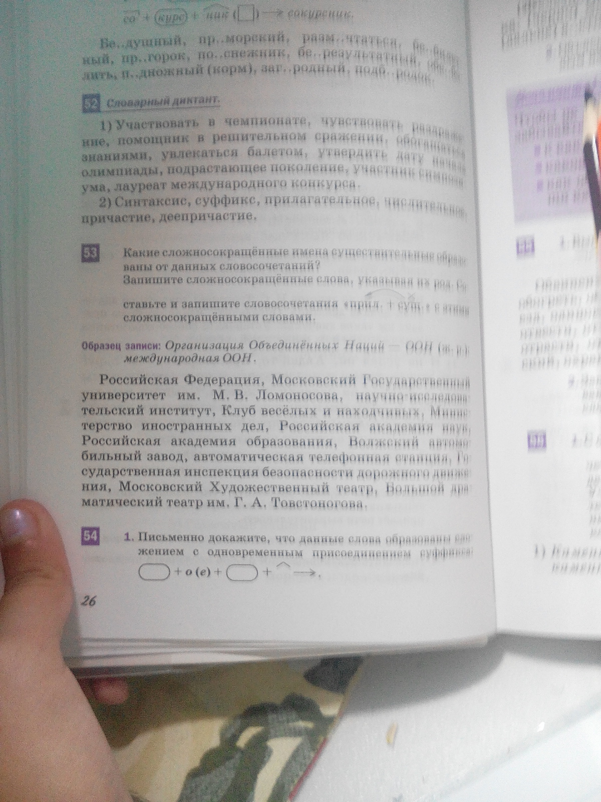могучая РФ(ж.р.),знаменитый МГУ(м.р,),передовой НИИ(м.р,), городской КВН(м.р,),серьезное МИД(с.р.),изобретательная РАН(ж.р.),новаторская РАО(ж.р.), большой ВАЗ(м.р,), гибридная АТС(ж.р.),честная ГИБДД(ж.р.),старинный МХАТ(м.р,), творческий БДТ(м.р,)