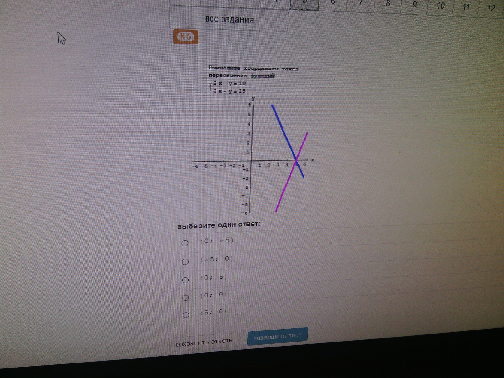 Так как точка пересечение находится на 5 по оси х и на 0 по оси у