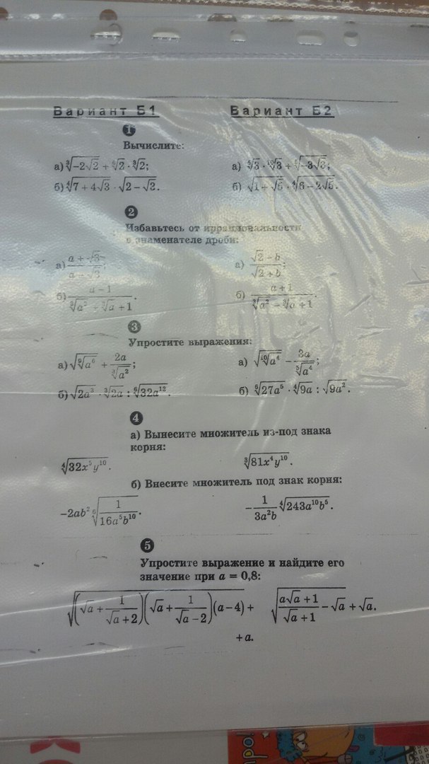 ![sqrt[3]{-2 sqrt{2} }+ sqrt[6]{2}* sqrt[3]{2}=-(2 sqrt{2} )^{ frac{1}{3} }+2^{ frac{1}{6} }*2^{ frac{1}{3} }=- (sqrt{8} )^{ frac{1}{3} }+2^{ frac{1}{6}+ frac{1}{3} }= \ \ =-(2^{ frac{3}{2} })^{ frac{1}{3} }+2^{ frac{1+2}{6} }=-2^{ frac{1}{2} }+2^{ frac{1}{2} }=0 sqrt[3]{-2 sqrt{2} }+ sqrt[6]{2}* sqrt[3]{2}=-(2 sqrt{2} )^{ frac{1}{3} }+2^{ frac{1}{6} }*2^{ frac{1}{3} }=- (sqrt{8} )^{ frac{1}{3} }+2^{ frac{1}{6}+ frac{1}{3} }= \ \ =-(2^{ frac{3}{2} })^{ frac{1}{3} }+2^{ frac{1+2}{6} }=-2^{ frac{1}{2} }+2^{ frac{1}{2} }=0](https://tex.z-dn.net/?f=+sqrt%5B3%5D%7B-2+sqrt%7B2%7D+%7D%2B+sqrt%5B6%5D%7B2%7D%2A+sqrt%5B3%5D%7B2%7D%3D-%282+sqrt%7B2%7D+%29%5E%7B+frac%7B1%7D%7B3%7D+%7D%2B2%5E%7B+frac%7B1%7D%7B6%7D+%7D%2A2%5E%7B+frac%7B1%7D%7B3%7D+%7D%3D-+%28sqrt%7B8%7D+%29%5E%7B+frac%7B1%7D%7B3%7D+%7D%2B2%5E%7B+frac%7B1%7D%7B6%7D%2B+frac%7B1%7D%7B3%7D++%7D%3D+%5C++%5C+%3D-%282%5E%7B+frac%7B3%7D%7B2%7D+%7D%29%5E%7B+frac%7B1%7D%7B3%7D+%7D%2B2%5E%7B+frac%7B1%2B2%7D%7B6%7D+%7D%3D-2%5E%7B+frac%7B1%7D%7B2%7D+%7D%2B2%5E%7B+frac%7B1%7D%7B2%7D+%7D%3D0+++)