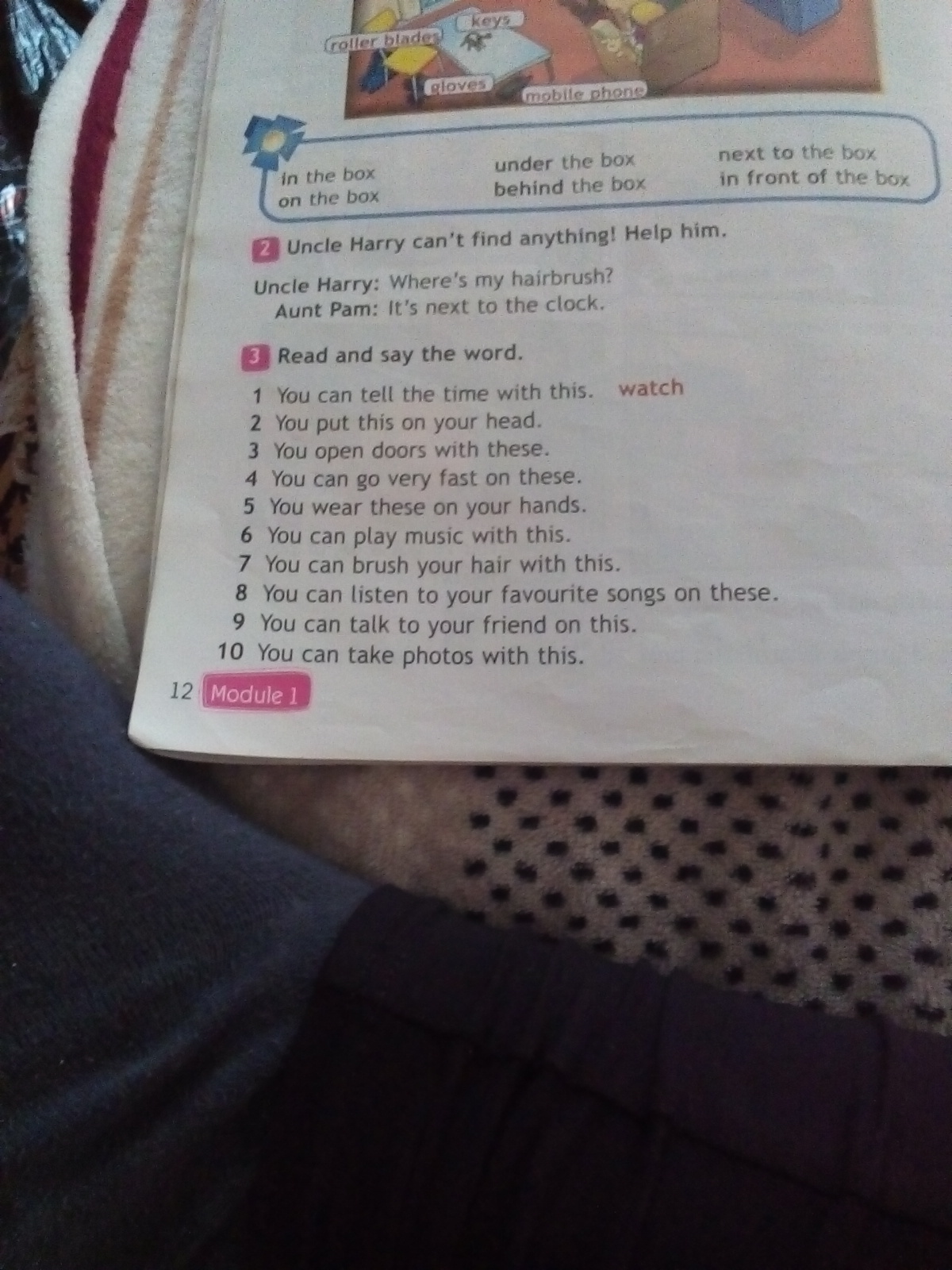 2. Hat . 3. Key. 4. Rollers. 5. Clock. 6. Piano. 7. Comb. 8. Player. 9. Phone. 10. Camera