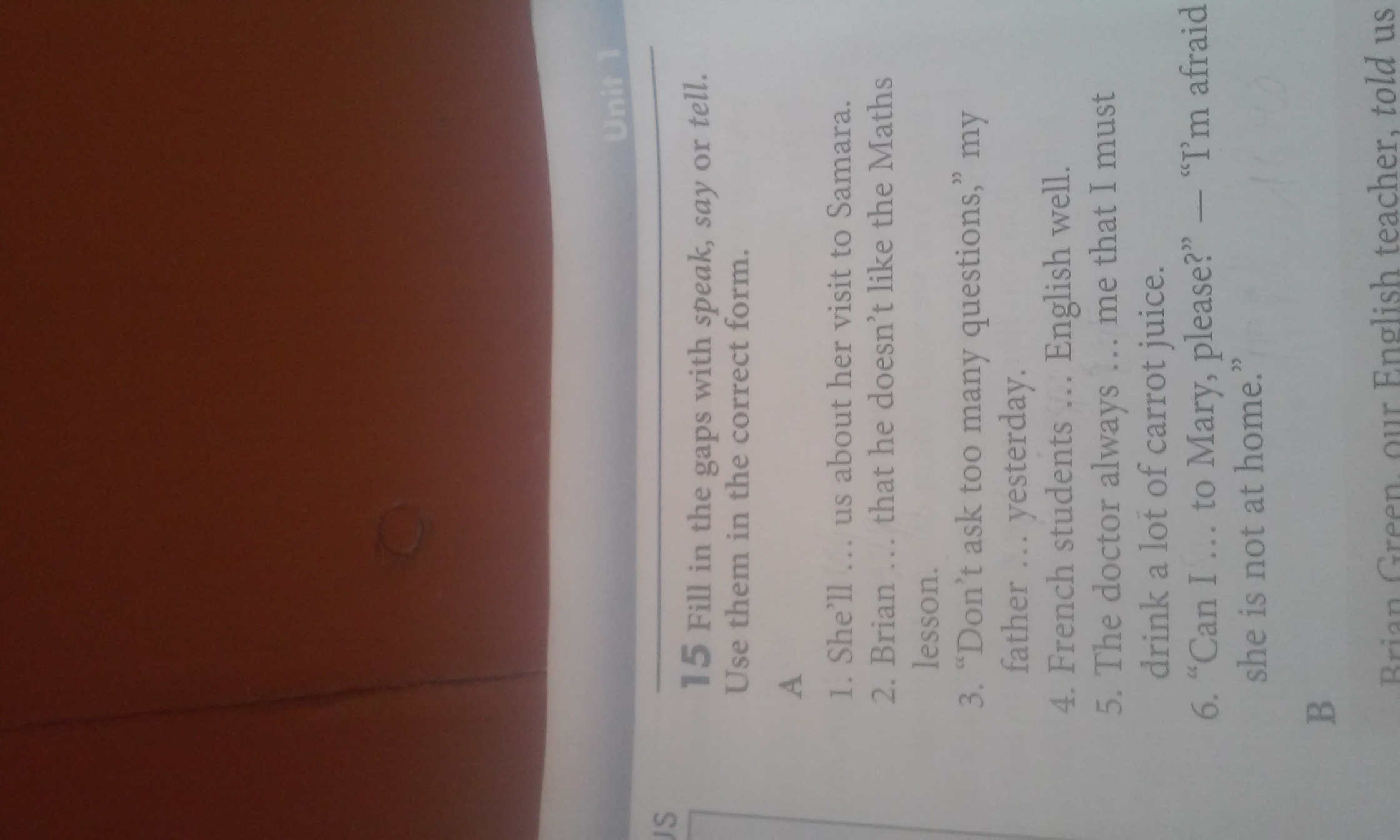 она нам расскажет о ее поездке в Самару.1 tell.2 say. Брайин сказал что ему не нравится уроки математики .3 say.не задавай так много вопросов сказал вчера мой папа. 4speak. французские ученики отлично разговаривают на английском языке. 5tell.доктора всегда верят мне пить морковный сок.6 speak. могу ли я поговорить с Мэрри. боюсь ее нет дома.