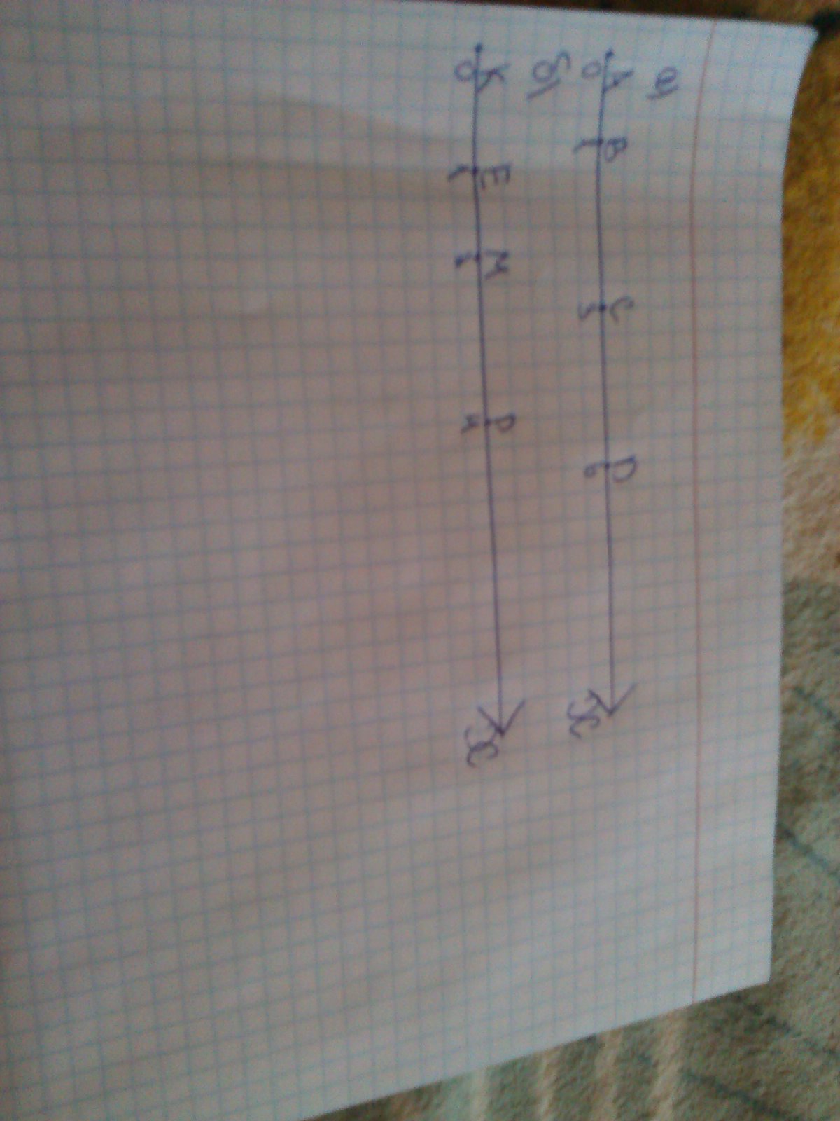б)К(0),Е(1),М(2)Р(4), если единечный отрезок равен длине трёх клеток тетради.