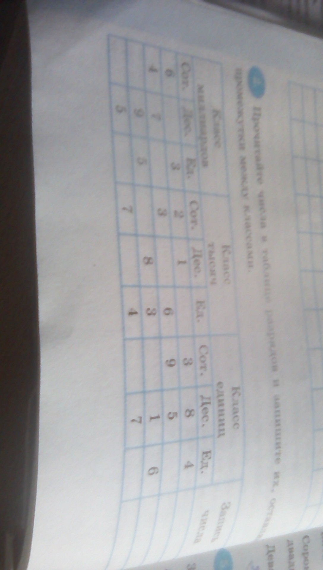 Прочитайте числа в таблице разрядов и запишите их,оставляя промежутки между классами помогите!!!
