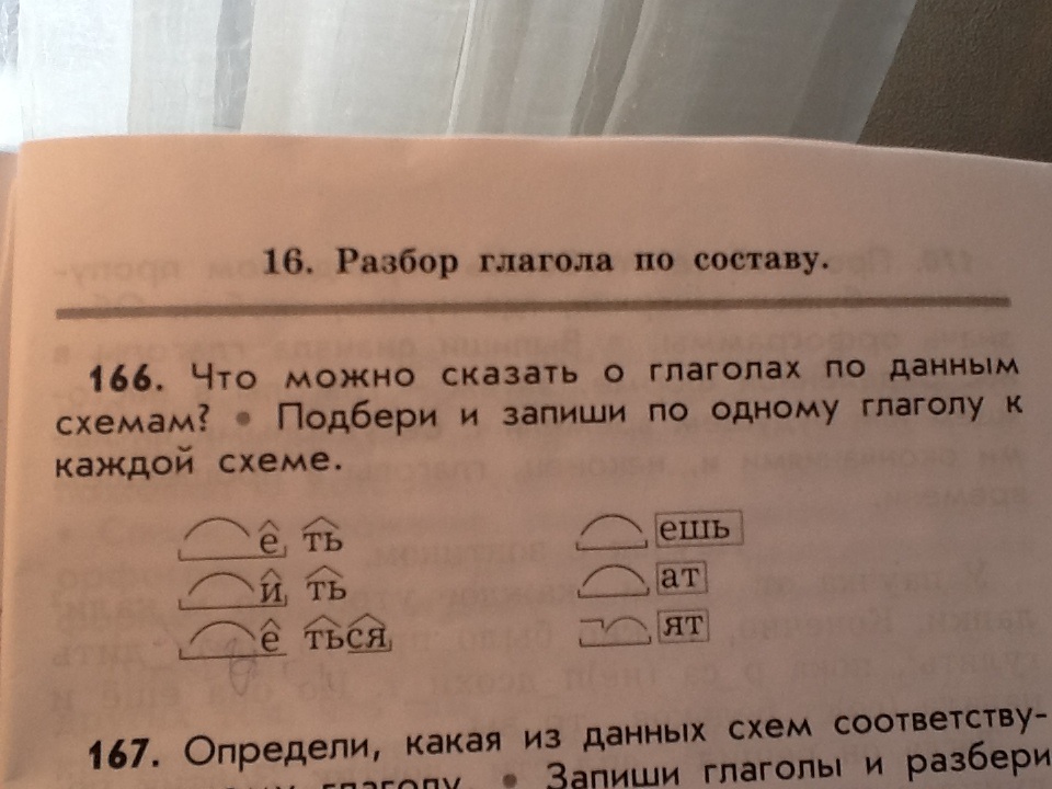 Задание 1. ( упражнение 166) Подбери и запиши по одному глаголу к каждой схеме!
