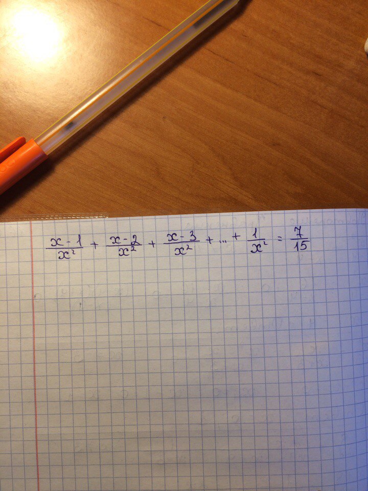 Х = 15 в любом случае, расписывать ряд дробей по логике данной в первых 3х дробях, или не расписывать. НО я не поленюсь и распишу, как будут выглядеть числители при Х = 15, тогда как в знаменателе будет 15 в квадрате.