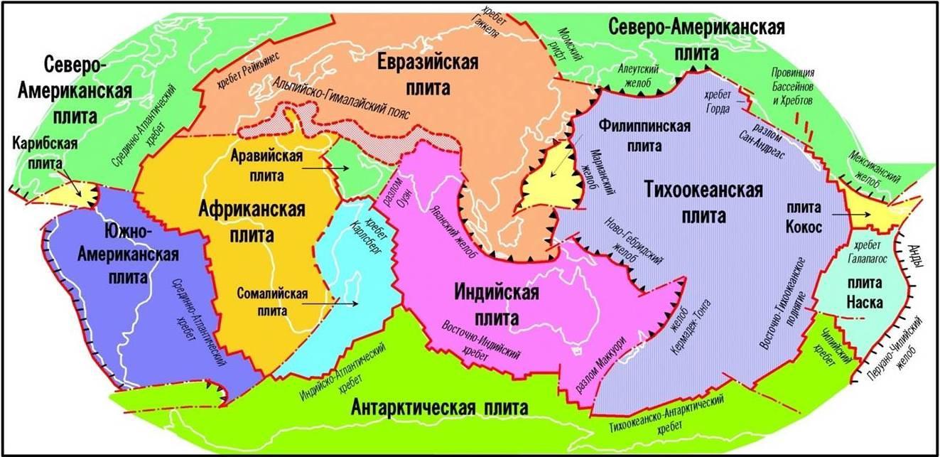 Можно выделить семь крупных литосферных плит.