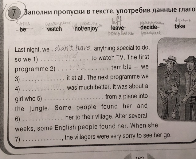 Заполни пропуски в тексте, употребив данные глаголы в past simple.