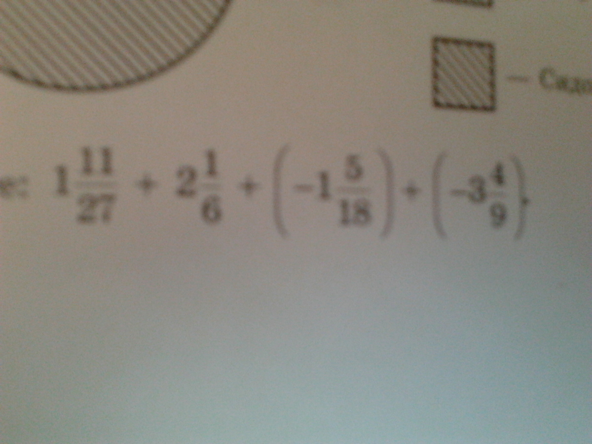 1frac{11}{27}+2frac{1}{6}+(-1frac{5}{18})+(-3frac{4}{9})=frac{38}{27}+frac{13}{6}-frac{23}{18}-frac{31}{9}=