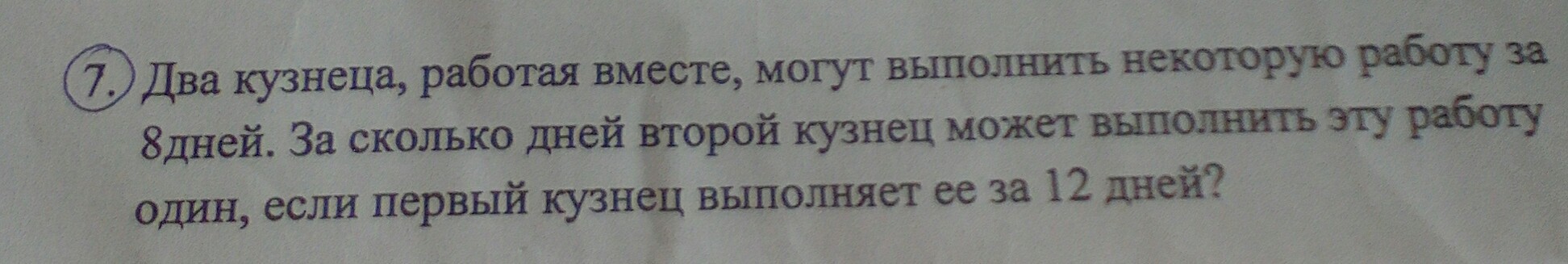 если бы оба работали одинаково, то первый выполнил бы за 16 (8+8) дней. Он выполнил за 12 дней, что на 4 дня, или 25%, быстрее. значит второй выполняет работу медленнее на 4 дня. 16+4=20