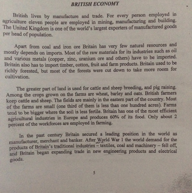 В прошлом веке Британия закрепила за собой лидирующие позиции в мире в качестве товаропроизводителя, торговца и банкира. После первой Мировой Войны в мире спрос на традиционное производство Британии: текстиль, уголь и машинное оборудование - упал, и Британия начала расширять торговлю в новом инженерном производстве и электрических благах.
