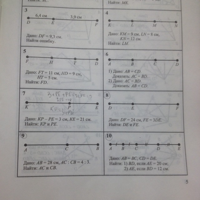 8) Так как DF=24 см, значит DE примем за x, тогда FE=3x. Составим и решим уравнение. х+3х=24
