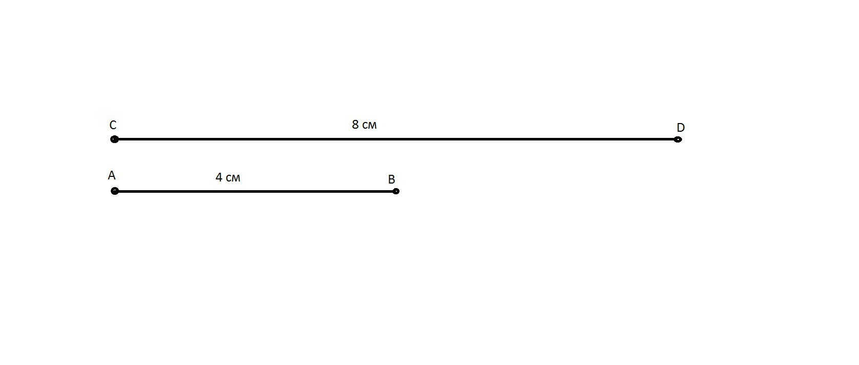 Отрезок CD- 8 см. Так как если AB- 4 см и AB=1/2 CD, то CD= 4 см х 2= 8 см.
